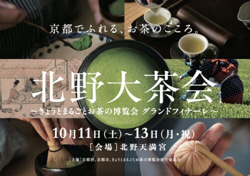 京都の茶文化をまるごと体験!2025年10月11日〜13日開催。京都を訪れた国内外の観光客が京都の茶文化を体感できるよう、「茶道・煎茶道各流派による茶会」や「過去の「北野大茶湯」に関する展示」、「府内団体による野点茶会」、「茶文化にゆかりのある府内…